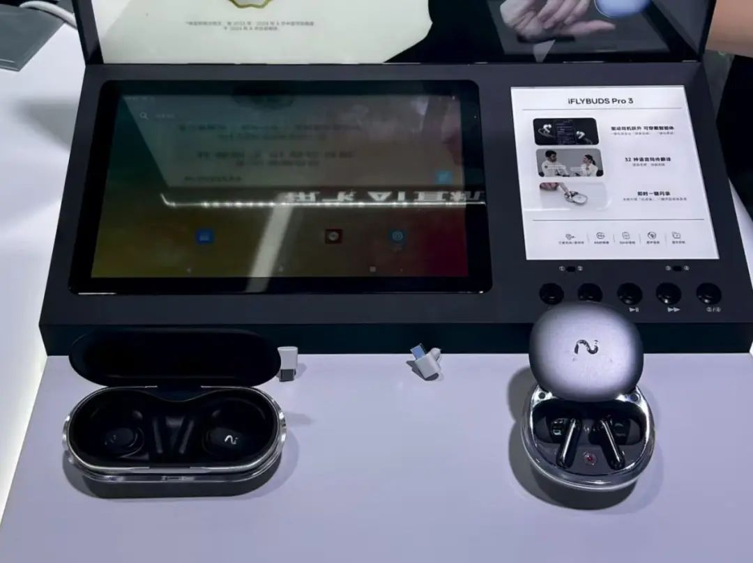 今年WAIC现场,AI硬件公司未来智能现场展出了其今年刚刚推出的两款新品AI会议耳机Pro 3和Air 2,其中内置了面向个人商务办公场景的AI Agent——viaim大脑。