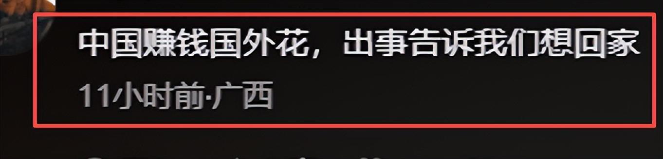 还有网友说:“在中国赚钱国外花,玩的时候没想起来大家,出事了才喊想回家。”
